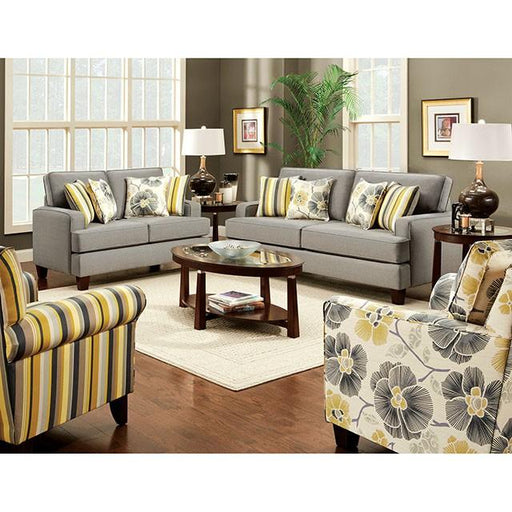 FOA WestWolver Gold/Gray Chair, Gold, 39"L X 37"W X 38"H, 76lbs. Low arms that sweep up to the back and T-cushion seating give this sofa group its stunning...