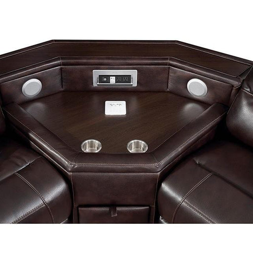 FOA WestTransitional Dark Brown Fabric, Metal, Foam Glider Recliner Webbing Back Frame Construction Rounded Wide Track Pillow Top Arms Console w/ Power Ou...