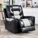 With a touch of your finger, turn your regular hangout into a party! The eclectic vibes start with the two-tone finish, with black and light gray combo that screams "Fun!" Specially designed power controls help users recline slowly, with the chair featuring a glider mechanism. Like every piece in this ensemble, it allows for your USB devices to be charged throughout the night.
